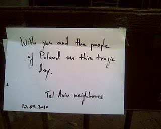 Blog : PhilosémitismeLes Israéliens partagent la douleur des PolonaisPhotos prises devant l'ambassade de Pologne à Tel Aviv. (Source: Polish-Jewish Relations post-'89 blog: Israelis share Poland's grief) Président Lech Kaczynski Le CCOJB exprime ses condoléances à la Pologne | Membre Juif.org