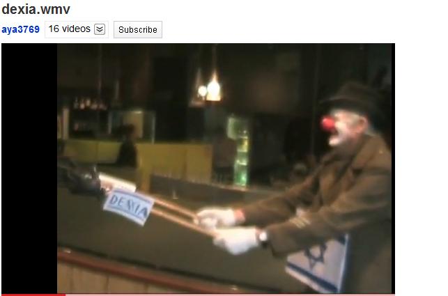 Blog : PhilosémitismeBrussels: demonstration against Israeli blood drinkers - blood libel revisited"Ohhhh. Bravo. No blood money. (Applause) Cheers Israël. Ohhhhhh. (Applause) I love blood. Have a glass of wine. I love blood. Have a glass of wine." ["Ohhhh. Bravo. Pas d'argent au sang. A Israël. Ohhhhhh. (Applaudissements) J'aime le sang. Un petit verre de sang. J'aime le sang. Un petit verre de sang."] (Anti-Israël demonstrations in Brussels, 12 May 2010) 2010 - Multisecular blood libel revisited: blood libel public accusations against Jews/Israel return to Brussels, the capital of Europe. "Shareholders and gate crashers on their way to the [French-Belgian] Dexia Bank general assembly." - Note that the courageous protesters disguised themselves to avoid being identified. - 75 Belgian organisations participated in the demonstration - they included mainstream NGOs, political parties, unions (list below). The Belgian radio RTBF (French-speaking) and other media covered the event - approvingly.- Esti Micenmacher, of WhoProfits, a radical Israeli NGO (see NGO Monitor), funded by the European Union, gave a number of conferences in Brussels to promote BDS (Boycott/Divest/Sanctions). She also spoke at the demonstration (photo below). Angela Godfrey-Goldstein of ICAHD (The Israeli Committee against House Demolitions, NGO report), another EU- funded radical Israeli NGO, was also in Brussels with Esti. The two "militants" were interviewed by Le Soir. Esti Micenmacher of Who Profits being interviewed at the demonstration. To watch the video click HERE (Annie Bannie blog, 12 May 2010: National demonstration against the financing of Israeli colonisation by Dexia) Organisation: Plate-form 'Palestine occupée - Dexia impliquée'* * COBI ? Coördinatie Boycot Israël (initiateur-initiatiefnemer), Association Belgo-Palestinienne Wallonie-Bruxelles, ACV ? Brussel-Halle-Vilvoorde, Algemene Centrale ABVV ? Centrale Générale FGTB, Alliance for Freedom and Dignity (AFD), Artistes contre le Mur, Attac Vlaanderen, Attac Wallonie-Bruxelles, BBTK-SETCa, Brugs Palestina Comité, BRussells Tribunal, CNAPD ? Coordination Nationale d'Action pour la Paix et la Démocratie, CODIP ? Centrum voor Ontwikkeling, Documentatie en Informatie Palestijnen, Conseil Consultatief Nord-Sud-Ville de Nivelles, Comac, Comité de Solidarité avec le Peuple Palestinien de Braine-L'Alleud, Comité Verviers Palestine, Coordination des Associations pour une Paix Juste au Proche-Orient (PJPO) du Brabant Wallon - PJPO Ittre - PJPO Mazerine - PJPO Nivelles, Divers & Actief, ECOLO, Egalité, FGTB Charleroi/Sud-Hainaut, FOS ? Socialistische Solidariteit, Friends of the Earth Vlaanderen en Brussel, Gemeentes /Communes: Chapelle-Lez-Herlaimont ? Ciney ? Ittre ? Mouscron ? Vielsalm ? Viroinval, Geneeskunde voor het Volk ? Schaerbeek, Génération Palestine, GROEN!, Groupe Palestine Santé, Initiatief Cuba Socialista (ICS), intal, intal-CDR regio Heist-op-den-Berg, Jong Groen!, Kif Kif, La Braise Culture asbl ? Charleroi, LAP - Leuvense Actiegroep Palestina, LBC-NVK, LCR, LEF, Marianne Charleroi, Mouvement Chrétien pour la Paix, Mouvement Citoyen Palestine, Netwerk Vlaanderen, OWW: Hasselt - Heist-Goor ? Hulshout vzw - Herk-de-Stad - Leuven ? Overpelt, Pax Christi Charleroi, Plate-forme Charleroi-Palestine (22 associations), PTB-PVDA, Recht op Migratie, Recht op Terugkeer, Reseau Financement Alternatif asbl, SCI, Solidarité Socialiste, SP.A, Steungroep voor Rechtvaardigheid en Vrede in Guatemala, The Palestinian Community in Belgium, UCOS, 't Uilekot, Une Autre Gauche, UPJB, Vlaams Palestina Komitee, Vrede vzw, Vredesactie, Vrouwen in 't Zwart Leuven | Membre Juif.org