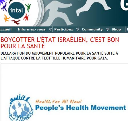 Blog : PhilosémitismeONG belge: boycotter Israël, c'est bon pour la santéL'ONG belge INTAL est bien connue pour son militantisme virulemment anti-israélien. Nous avons à multiples reprises rendu compte de leur activités (cliquer ICI) dont la denière en date mettait en scène à Bruxelles le supposé cannibalisme des Israéliens. - INTAL: vélo Palestina pour le boycott des "cannibales" israéliens - Modrikamen: manif à Bruxelles "une resucée des poncifs antisémites les plus violents"- Tout boycott serait préjudiciable aux intérêts économiques de la Belgique (La Belgique gagnante dans ses échanges commerciaux avec Israël)Voici sa nouvelle campagne anti-israélienne: INTAL: Boycotter l'État israélien, c'est bon pour la santé, Déclaration du Mouvement populaire pour la santé suite à l'attaque contre la flottille humanitaire pour Gaza (posté par Joaquim da Fonseca) N.B.Contrairement à ce que Joaquim da Fonseca veut faire croire, la déclaration ne dit pas que "Boycotter l'État israélien, c'est bon pour la santé". La formule est entièrement de son cru. L'homme est infiniment spirituel. 1 commentaire