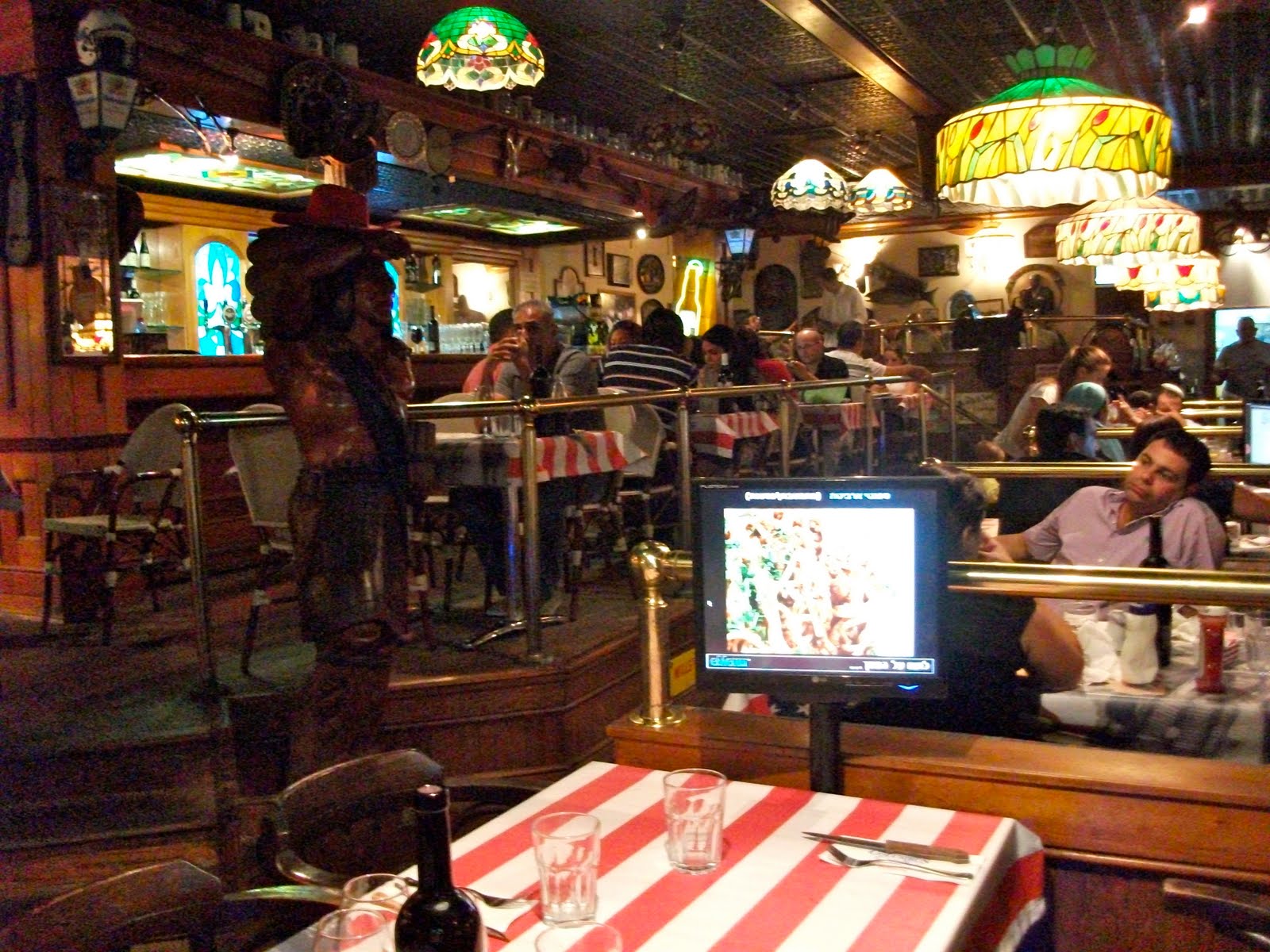 Blog : Le Futé KasherColombus - Restaurant US à HertzliaViande - Américain - Hertzlia - Prix moyens/élevés Le Colombus est un restaurant typique américain avec ses décors et sa carte. Situé en plein coeur de Hertzlia pitouah, vous ressentirez en y arrivant un vrai dépaysement. Nous sommes ravi qu'un restaurant de ce type avec plus de 200 places assises, affiche un label Kasher depuis 3 ans (changement de propriétaire). Il faut à nouveau souligner la progression spectaculaire des restaurants Kashers à Hertzlia : Meat & Wine (un des meilleurs d'Israël), Mifgash Hasteak, Guéhalim, Bistro 56, Mazzarine et d'autres. Tous pleins pour ce soir de Tou Béhav'.Mobilier en bois, grand bar, lampe Tiffany pour l'éclairage, décoration très US, écrans tactiles sur les tables (pour consulter le menu et ses photos)? Tout rappelle le style "american Mid-Western Saloon". C'est une version israélienne de la chaine bien connue des TGI Friday's restaurantsVous pourrez voir sur les murs : un cayak grandeur nature, des raquettes, des vielles plaques auto et, la fameuse plaque ?come see us again' des anciennes stations ESSOQuant à la carte, elle est aussi très américaine avec un grand choix de viandes dans des grammages impressionnants. Le Colombus propose 4 menus : 99 NIS, 129 NIS, 179 NIS et 219 NIS. Les différences tiennent surtout aux quantités des portions. Ainsi, dans le menu à 129 NIS, l'entrecôte a 300 g, dans celui à 179 NIS, 500 g et dans le menu à 219 NIS 750 g !Pour 18 NIS de supplément dans chaque menu, vous pourrez commander le fameux "pain d'oignons". C'est une espèce de grand gâteau rond d'oignons frits entremêlés. Un suffit pour 2 ou 3 !Dans chaque menu, vous avez le choix entre 5 ou 6 entrées (poêlée de champignons, ailes de poulet sauce Chili, Aubergine tehina, Antipasti, Chili con carné) et de 6 ou 7 plats principaux (Hamburger américain, Fajita de poulet ou boeuf, entrecôte, brochette d'agneau').La présence de ce type de restaurant, à Hertzlia, avec sa taille, son style nous a réellement enthousiasmé. Même si la qualité des mets servis, nous est apparu très moyenne. Il semble qu'on mise plus sur les quantités, le spectacle que sur la qualité. Vraiment américain, non ?Quoiqu'il en soit, on a été ravi de découvrir Le Colombus. COLOMBUS American Bar and Restaurant 4, Abba Eban street, Hertzlia Tél. 09 958 98 80 Imprimer cet article | Membre Juif.org