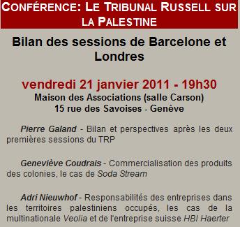 Blog : PhilosémitismeLe Sartre belge continuera-t-il à prôner le boycott d'Israël en France' En toute impunité !"Israël c'est un état voyou. Mais à quoi cela sert-il de le répéter'" (Pierre Galand, 15/11/2010) Alors que c'est illégal et que des citoyens français se font condamner (Un militant pro-palestinien jugé pour une vidéo incitant au boycott d'Israël), une haute personnalité belge peut-elle prôner en toute impunité le boycott d'Israël en France ? Comme il le fera aujourd'hui à Genève ? Pierre Galand est pape de la laïcité belge et un anti-israélien enragé qui se prend pour Bertrand Russell et Jean-Paul Sartre (fondateurs du Tribunal Russel) a lui aussi fondé son tribunal "sur" la Palestine ... Pierre Galand, Senior Vice-président de la Fédération Humaniste Européenne, Président du Centre d'Action Laïque belge, ancien sénateur socialiste, Maître de conférences et conseiller du Recteur de l'Université Libre de Bruxelles, Président du Comité Européen de coordination des ONG sur la Palestine (ECCP) basé à Bruxelles, membreu du comité consultatif du fumeux BRussels Tribunal, fondateur des non moins fumeux Tribunaux Russell belges sur la Palestine [1], président de l'Association belgo-palestinienne, promoteur de la campagne BDS contre Israël en France et en Belgique), etc etc sera à Genève avec deux expertes européennes: la française Geneviève Coudrais et la néerlandaise Adri Nieuwhof, pour faire le bilan des activités des deux tribunaux Galand (pardon Russell) sur la Palestine. La "tribunalite" aiguë Entre-temps un autre expert belge, catholique, professeur à l'Ecole européenne pour qui Israël est également un état voyou participera à un autre type de Tribunal Russell (Le Belge Pierre Piccinin va juger Bernard-Henri Lévy, escroc intellectuel ....) [1] Le premier s'est tenu à Barcelone et le second à Londres, dans la plus plus grande indifférence des médias espagnols et britanniques, même ceux acquis à la cause palestinienne. Pas un mot dans The Guardian, sur la BBC etc. Au moins, deux nouveaux tribunaux sont prévus. 2 commentaires