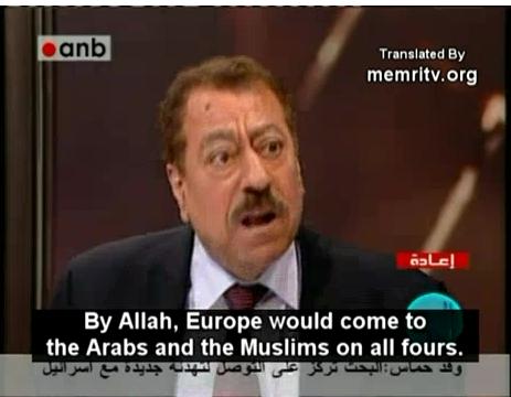 Blog : PhilosémitismePar Allah, l'Europe ramperait à quatre pattes devant les Arabes et les musulmans (2)Dans la deuxième partie de l'interview diffusée sur la télévision ANB le 26/01/2009 (Pour Arafat les Juifs sont le peuple le plus corrompu du monde) du Palestinien Atwan Abd Al-Bari [1], rédacteur en chef d'Al-Qods Al-Arabi. Ce genre de discours se prononce en arabe mais jamais dans une langue occidentale par les Palestiniens qu'il est convenu d'appeler 'modérés'. "Supposons que les Arabes mettaient un terme à la coopération sécuritaire [entendez contre le terrorisme issu des pays arabes et musulmans] avec l'Europe et disaient: "Maintenant vous vous débrouillerez tous seuls face à Al-Qaeda. Nous on ne s'en occupe plus'. Par Allah, l'Europe ramperait à quatre pattes devant les Arabes et les musulmans. Mais le problème est qu'il n'y a pas de vrais hommes [parmi les dirigeants arabes]." Sources: ANB (TV Liban/Londres) et MEMRI Première partie de l'interview: "Le défunt président, le martyr Yasser Arafat, m'a dit une fois:"Dans toute ma vie, je n'ai jamais rencontré un peuple aussi corrompu que le peuple israélien" En fait, il a utilisé le terme "le peuple juif ". Il m'a dit: "Par Allah, j'avais l'habitude d'acheter avec de l'argent généraux les plus hauts gradés. J'ai fait de la contrebande de personnes, d'armes, tout ce que je voulais". Il a dit: "Vous ne pouvez pas imaginer le niveau de corruption de ce peuple et combien il est facile de les acheter avec de l'argent"." [1] Après avoir travaillé pour de nombreux journaux arabes, Abdel Bari Atwan dirige le journal al-Quds al-Arabi, l'un des trois grands quotidiens écrits en langue arabe édités à Londres, depuis 1989. Il est considéré comme l'un des éditorialistes les plus importants de la presse arabe et une figure très écoutée et très populaire dans le monde arabe. Il est régulièrement invité par la chaîne Al-Jazeera et la BBC. Il est membre du Conseil national palestinien (Parlement palestinien) depuis 1990. Note: Abdel Bari Atwan vient de passer sur la chaîne française EuroNews basée à Lyon. Il était interviewé en arabe traduction anglaise par Issam Badran à Lyon... (12:10). Il y a bien un discours pour les Européens et un autre pour les Arabes chez Atwan! Abdel Bari Atwan, le journaliste palestinien chouchou de la BBC était à la solde de Kadhafi | Membre Juif.org