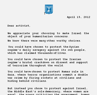 Blog : Philosémitisme"Flytilla": brillante réussite d'Israël et merci aux flytilleursContexte: Gros mensonge palestinien: la Flyflotilla est composée d'"Européens moyens et normaux" Après le super fiasco de la Marche Mondiale sur Jérusalem, les ONG européennes férocement anti-israéliennes ont enregistré un nouveau super flop. A part un incident (voir Comme je peux comprendre le Lieutenant Colonel Shalom Eisner!), le gouvernement israélien a géré de manière magistrale la campagne Flytilla (ou Flyflotilla et/ou 'Bienvenue en Palestine'). On peut le regretter, mais ce genre d'épreuve donne un savoir faire exceptionnel à Israël dont beaucoup de pays confrontés à ce type de problème bénéficient. Donc en quelque sorte on peut remercier cette brigade d'activistes anti-israéliens constituée d'Européens atypiques. Et comment ne pas se délecter à la lecture du message remis aux "Chers Militants" qui ont été interceptés à l'aéroport de Tel-Aviv qui souligne leur hypocrisie et leur cynisme: Cher militant, Nous vous remercions d'avoir choisi Israël pour vos préoccupations humanitaires. Nous savons qu'il y a de nombreux autres choix. Vous auriez pu choisir de protester contre la sauvagerie quotidienne du régime syrien contre son propre peuple, qui a fait des milliers de victimes. Vous auriez pu choisir de protester contre la répression brutale du régime iranien sur la dissidence et le soutien au terrorisme à travers le monde. Vous auriez pu choisir de protester contre la férule du Hamas à Gaza, où les organisations terroristes qui commettent un double crime de guerre en tirant des roquettes sur des civils avant de se cacher derrière les civils. Mais au lieu de cela, vous avez choisi de protester contre Israël, seule démocratie du Moyen-Orient, où les femmes sont égales, où la presse critique le gouvernement, où des organisations de défense des droits peuvent opérer librement, où la liberté religieuse est protégée pour tous et où les minorités ne vivent pas dans la peur. C'est pourquoi nous vous suggérons de nous laisser résoudre d'abord les vrais problèmes de la région, puis de revenir et de partager avec nous votre expérience. Passez un vol agréable. | Membre Juif.org