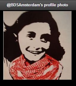 Blog : PhilosémitismeAnne Frank à nouveau récupérée par les Israël-bashersLes nazis et leurs complices ont exterminé six millions de Juifs européens dont un million et demi d'enfants. Anne Frank fut l'une de ces enfants exterminés. Son image est souvent récupérée, entre autres pour attirer des touristes à Amsterdam. Le groupe BDS (boycott d'Israël) d'Amsterdam exploite sans vergogne l'image d'Anne Frank pour stigmatiser les Juifs israéliens. Source. Déjà en 2008, Charles Johnson de Little Green Footballs dénonçait: Boomerang, a popular Dutch merchant of T-shirts, greeting cards, and other items, is now selling an image of Anne Frank wearing the symbol of Palestinian terrorism: Boomerang.nl - Werk - ?Banned Frank' by T. En Belgique, l'AEL avait produit un dessin d'Anne Frank au lit avec Hitler:"Anne, écrit ça dans ton journal.""Quand Hitler joue les Dutroux" ("Hitler goes Dutroux", AEL blog) Exploiting Anne Frank, par Alvin H. Rosenfeld | Membre Juif.org