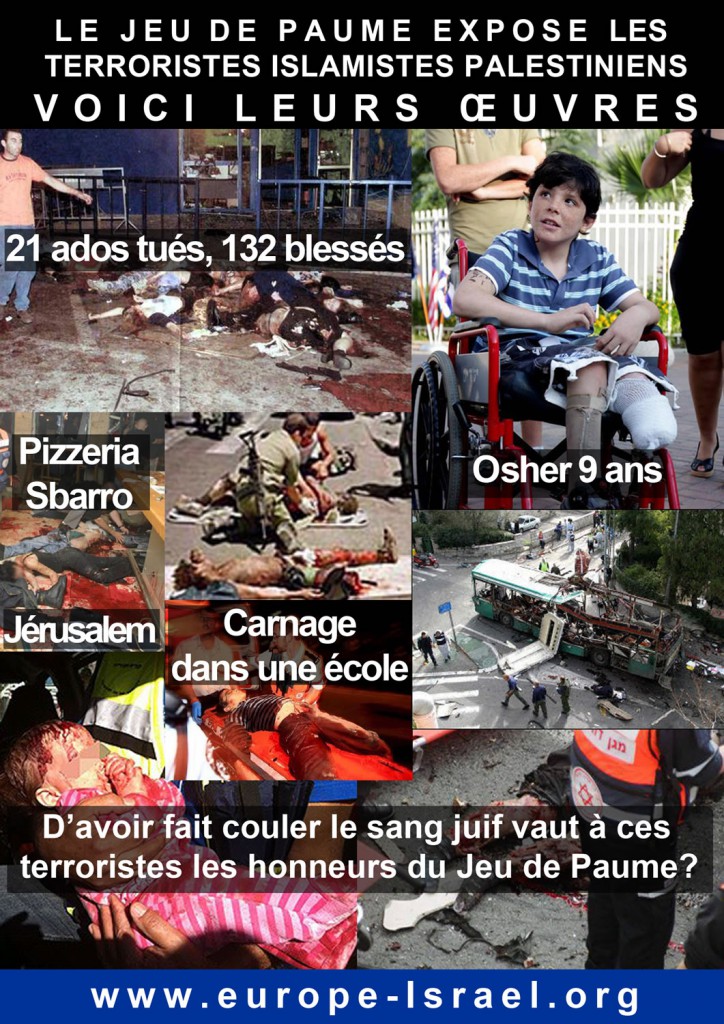 Blog : PhilosémitismeTerrorisme palestinien: les photos que vous ne verrez pas au Jeu de PaumeEurope Israël: Nouvelle manifestation devant le Jeu de Paume, dimanche 7 juillet à 15 H ! L'exposition qui glorifie les terroristes palestiniens au Jeu de Paume fait le tour de l'Europe (Italie, Espagne, France, Portugal). Au musée du Jeu de Paume vous verrez des photos de tueurs palestiniens ("martyrs" en version musulmane) mais pas de leurs victimes. Photos @ Daled Amos 2 commentaires