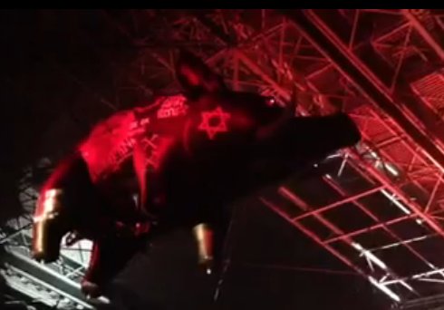 Blog : PhilosémitismeUne étoile de David sur un cochon dans un concert de Roger Waters en Belgique et aux Pays-Bas@ Europe Israël. Voir également ICI. Note: selon Joods Actuel qui a rapporté l'histoire jeudi, des spectateurs ont été choqués par le fait que qu'on voyait la silhouette d'un homme qui adressait le salut nazi au cochon et à l'étoile de David. L'ex chanteur des Pink Floyd, Roger Waters singe Morsi et El Qaradawi lors d'un concert en Belgique et aux Pays-Bas où il fait flotter un cochon frappé d'une étoile de David. Cet affligeant spectacle a eu lieu en Belgique à l'occasion d'un concert devant 35.000 personnes le 20 juillet à Werchter sans qu'aucune association juive ne rapporte les faits. La presse belge a critiqué les méthodes de Roger Waters (ex Pink Floyd). L'affaire a été rapportée par des spectateurs Israéliens et relayée par des sites américains, comme Elder of Ziyon [et le très célèbre Little Green Footballs]. La folie antisémite de Roger Waters ne fait aucun doute. Il s'était déjà distingué au "tribunal" Russell sur la Palestine réuni à New York en octobre 2012. Il faisait partie du "jury" composé de gloires vieillissantes comme lui-même, la romancière Alice Walker, l'ancienne panthère noire Angela Davis, l'ex-Congresswoman et conspirationniste Cynthia McKinney. Et bien sûr l'incontournable Stéphane Hessel, mascotte de Pierre Galand, le grand ponte du "tribunal". Noam Chomsky qui était la star du spectacle n'était pas venu' Morsi nous avait déjà appris que "Les Juifs sont des suceurs de sang, les descendants des porcs et des singes". Il faut reconnaître qu'en Europe ce type de discours ne choque pas. Le Centre Simon Wiesenthal a déclaré le 24 juillet: en faisant flotter une baudruche en forme de cochon frappé de l'Etoile de David lors de son concert, Roger Waters s'est positionné comme l'avant-garde de l'antisémitisme. Le Centre Simon Wiesenthal dénonce cette manifestation de Roger Waters, ex Pink Floyd. Un spectateur israélien a relaté les faits à YNET News. [1] "Waters est un des partisans du mouvement anti-Israël BDS (Boycott, Divestment, Sanctions). Sans parler de la question Israël/Palestine, Waters a déployé un antisémitisme médiéval classique largement utilisé à la fois par la propagande Nazie et Soviétique pour inciter à la haine contre les juifs" a accusé le rabin Abraham Cooper, vice-doyen du Centre Simon Wiesenthal, une ONG qui combat le sectarisme et l'anti-Sémitisme dans le monde entier. "Nous en appelons à des personnalités du monde du spectacle pour condamner cet étalage grotesque de haine anti-juive et attendons une réaction de la part de ces militants BDS qui prétendent que leur but est d'aider à la paix et à la réconciliation entre israéliens et arabes palestiniens", a conclu Cooper. Voici la vidéo de son concert aux Pays-Bas (Arnhem, 18/07/2013) trouvée par Elder of Ziyon: [1] "I came to the concert because I really like his music, without any connection to his political stance toward Israel", says Alon Onfus Asif, an Israeli living in Belgium. "And I had a lot of fun, until I noticed the Star of David, on the inflatable pig. That was the only religious-national symbol which appeared among other symbols for fascism, dictatorships and oppression of people. Waters crossed the line and gave expression to an anti-Semitic message, beyond all his messages of anti-militancy". | Membre Juif.org