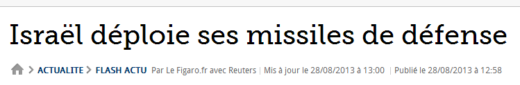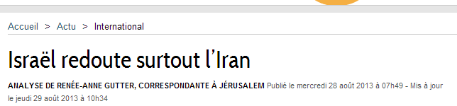 Blog : Victor PEREZLes médias contraints à la réalité proche-orientaleTout observateur neutre du conflit proche-oriental ne pourra, sans se ridiculiser, affirmer que celui-ci est retranscrit par l'ensemble des médias européens -qu'ils soient papiers, radiophoniques ou télévisuels- de façon objective, la profession ayant depuis plus d'une décennie adopté la vision manichéenne attestant que l'Etat d'IsraëlEST le méchant et les ??Palestiniens'? SONT les victimes. A l'heure où la communauté internationale s'émeut de l'utilisation de gaz contre la population syrienne et envisage une opération militaire à l'encontre de Bachar El-Assad, ceux-ci se voient contraints, sauf à être ridicules, d'informer leurs lectorat de la réalité du terrain. Inscrivez-vous pour recevoir par courriel les nouvelles publications du blog. A lire les entêtes de quelques médias, se pourrait-il, au final, que l'Etat d'Israël ne soit pas le ??criminel'? dépeint à longueur de colonnes mais seulement un état en légitime défense face à la volonté immuable et inaltérable de l'Ouma, championne de la ??cause palestinienne'?, de le voir disparaître de la surface du globe ? Quel autre pays au monde se voie systématiquement mis en joue alors qu'il n'est en rien partie prenante dans les conflits de la région ? Quelle haine motive ses ennemis sinon l'hostilité systématique et millénaire portée envers le Juif ? Questions laissées sans réponses par la plupart des médias ! Aux différents lectorats, donc, le soin de les y contraindre pour les extirper enfin de la palestinite aigüe qui les atteint et redonner, ainsi, à la déontologie du métier ses lettres de noblesses perdues. Le Monde : Les Echos : La Libre.be : Libération : Le Figaro : | Membre Juif.org