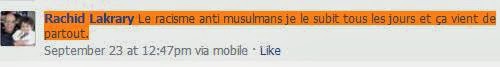 Blog : PhilosémitismeCertains policiers (belges) sont-ils contaminés par l'islamo-fascisme de Dieudonné?De surcroît M. Lakrary se plaint sur Facebook du "racisme anti-musulmans" des Belges: "Le racisme anti musulmans je le subit (!) tous les jours et ça vient de partout"... Tous les jour et de partout... Un discours bien rôdé et bien familier... M. Lakrary, malgré son admiration pour le comique français Dieudonné, s'est empressé de changer la photo de son profil Facebook - disparue la quenelle dieudonnésienne. Le Peuple: La quenelle est le geste à la mode. Lancée par Dieudonné, elle est officiellement un bras d'honneur adressé aux puissants, souvent confondus avec les juifs dans la rhétorique de l'humoriste devenu prêcheur de haine. Davantage encore qu'un geste vulgaire, elle ressemble en réalité fortement au salut nazi. En France, des soldats ont déjà été sanctionnés. Que fera la ministre de l'Intérieur belge alors qu'un de ses policiers en uniforme a effectué le geste' Sur les différents réseaux sociaux, Rachid Lakrary présente d'abord son côté affable: ?pour ceux qui se rappelle (sic) de moi ben (re-sic) salut. Je suis marié et j'ai deux enfants'. L'homme déclare également être fonctionnaire du ministère de l'Intérieur, même si le flou reste le plus total sur son affectation actuelle. La réalité est pourtant moins reluisante. Lakrary a adhéré au vaste mouvement initié par Dieudonné. Sur son profil Facebook, et avec l'approbation de' l'inénarrable Laurent Louis (parti ISLAM), on le voit, dans son uniforme de policier, effectuer une quenelle, bras tendu (!) vers le sol, l'autre bras rejoignant le premier, main tendue à hauteur d'épaule. La quenelle est à la mode au sein des corps constitués français. Des dizaines de policiers, militaires ou pompiers publient régulièrement des photographies d'eux effectuant le geste à forte charge antisémite. Le ministre de la défense Jean-Yves Le Drian a demandé et obtenu des ?sanctions fermes' à l'égard des deux soldats en uniforme qui ont effectué une quenelle devant une' synagogue. Lakrary avait d'ailleurs commenté: ?Trop fort les gars, je me sens de moins en moins seul' [Source]. Lire l'article complet ICI. 1 commentaire