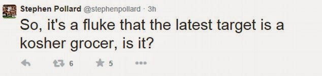 Blog : Philosémitisme"Tous les Juifs français que je connais sont partis ou se préparent à partir" (Stephen Pollard)"Chaque Juif français que je connais est parti ou prépare activement son départ.""C'est donc le fruit d'un hasard extraordinaire que leur dernière cible est une épicerie casher, n'est-ce pas'Sara, une otage et son bébéPour Stephen Pollard, éditeur de Jewish Chronicle, ce qui fut le moins surprenant dans les actes terroristes qui ont secoué la France hier est le fait que la communauté juive était visée. Car en ce qui concerne l'antisémitisme "fait maison", la France bat tous les records. Il prédit que l'exode des Juifs de France va s'accélérer. Et beaucoup préfèrent Londres à Paris... Grâce précisément à des hommes comme Stephen Pollard. Comme le relève JSS News: "Personne ne s'est manifesté spontanément pour ces personnes qui sont mortes parce que juives' Il est minuit trente, plus de 7 h Apres la tuerie antisémite' Je suis devant HyperCacher. Pas un non juif pour allumer une bougie, ni déposer une fleur ou un mot." Stephen Pollard @ Daily Telegraph: Antisemitism in France: the exodus has begun. As gunmen attack a kosher supermarket in Paris, Jews there will pack their bags even faster The least surprising thing about today's turn of events in Paris is that Jews are the target. Because when it comes to home grown anti-Semitism, France leads the world. A survey last year from the European Jewish Congress and Tel Aviv University found that France had more violent anti-semitic incidents in 2013 than any other country in the world. Jews were the target of 40 per cent of all racist crimes in France in 2013 ? even though they comprise less than 1 per cent of the population. Attacks on Jews have risen sevenfold since the 1990s. No wonder Jewish emigration from France is accelerating. From being the largest Jewish community in the EU at the start of this decade, with a population of around 500,000, it is expected by Jewish community leaders to have fallen to 400,000 within a few years. That figure is thought by some to be too optimistic. Anecdotally, every French Jew I know has either already left or is working out how to leave. [...] The number expected to leave this year for Israel was estimated at over 10,000 ? and that was before today's events. And that is just to Israel. Many are coming to Britain as part of the wider French exodus under President Hollande. David Tibi, the then leader of Paris's main Jewish umbrella group, left last July. As he told the Jewish Chronicle: ?There is an atmosphere of anti-Semitism in the streets. My daughter was attacked in the tramway, so was my son. The aggressors made anti-semitic comments and pushed them around. We no longer have a place in France.? The Jewish school shooting in Toulouse in 2012, in which four people were murdered at point blank range by a French-born jihadist trained in the Middle East; the growing support for Marine Le Pen?s National Front; and the mass popularity of anti-Semitic public figures such as comedian Dieudonné, are all part of the undercurrent of anti-Semitism that frames French life. And more recently synagogues have firebombed and Jewish areas attacked by mobs. Almost of all these attacks have been carried out by Muslims. Andrew Hussey, an author and expert on French Muslim affairs, says: ?anti-Semitism is a fundamental part of French history and culture in a very damaging way. At the end of the 19th century and the beginning of the 20th century, the petite bourgeoisie felt under threat from the Catholic Church and socialist movements. They turned to the Jews to blame them for every fault in French society, which culminated in the Dreyfus Affair.? That is now part of a toxic mix with more recent expressions of Muslim anti-Semitism. Joel Mergui, the chairman of Consistoire, the National Union of French Synagogues, puts the effect starkly: ?You can feel the bite at every level. At some synagogues, whole benches are suddenly empty.? 2 commentaires