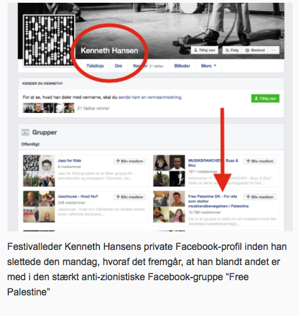 Blog : PhilosémitismeLe festival de jazz de Copenhague interdit aux musiciens israéliens ("Il y a quelque chose de pourri au festival de jazz de Copenhague")Le musicien de jazz israélien Alon Farber s'est adressé aux organisateurs du festival de jazz de Copenhague afin de s'y produire. Le responsable du festival Kenneth Hansen lui a répondu que le festival n'accueillait pas d'artistes israéliens. Alon Farber a posté le message et sa réponse sur sa page Facebook : "Il est hypocrite de ne blâmer qu'une seule des deux parties dans le conflit entre Israël et les Palestiniens. Les Palestiniens ont rejeté presque toutes les propositions de paix au cours des 50 dernières années et portent aussi une part de responsabilité dans le conflit. Rejetez-vous également les musiciens palestiniens' Je suis curieux de connaître votre avis." Le journaliste Jeppe Juhl n'hésite à évoquer la célèbre citation de Shakespeare dans Hamlet: "Il y a quelque chose de pourri au royaume du Danemark". Mais en l'adaptant aux circonstances minables propres au 21e siècle. Ca devient donc: "Il y a quelque chose de pourri au festival de jazz de Copenhague" (Something is rotten in the Copenhagen Jazz Festival). Pour Jeppe Juhl il est possible que Kenneth Hansen pratique depuis des années un boycott d'Israël non-officiel. Ce qui est clair c'est que l'homme adhère à des groupes violemment anti-sionistes qui ne reconnaissent pas à Israël le droit d'exister. Et il s'en vante publiquement. Aux dernières nouvelles ... il ne le fait plus! Quant au rejet d'Alon Farmer, le danois prétend qu'il s'agit d'une question de sécurité et pas de politique. La marie de Copenhague qui finance le festival à hauteur d'un million de kroner n'a pas apprécié d'être associée à cette affaire désolante. Elle demande des explications et menace de retirer une partie des subventions. La mairie précise que les décisions concernant la sécurité du festival lui incombent ainsi qu'à la police et pas à l'organisateur. | Membre Juif.org