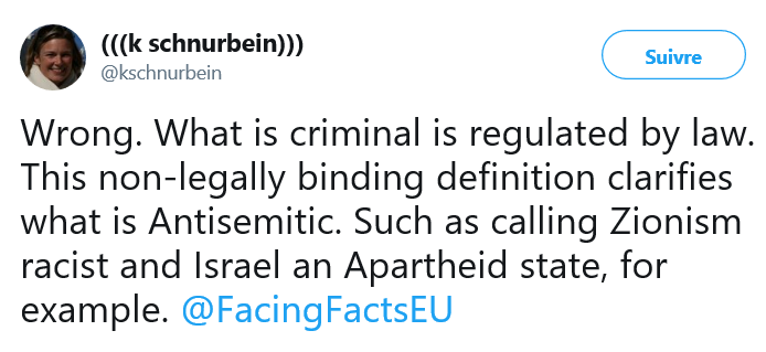 Blog : PhilosémitismeConférence à Bruxelles sur "l'apartheid israélien" dans le prestigieux Press Club Brussels EuropeKatharina von Schnurbein, coordinatrice de l'UE chargée de la lutte contre l'antisémitisme, a défini que l'accusation d'apartheid dirigée contre Israël comme relevant de l'antisémitisme ("What is criminal is regulated by law. This non-legally binding definition clarifies what is Antisemitic. Such as calling Zionism racist and Israel an Apartheid state, for example"). Mais visiblement en Belgique on ne tient absolument pas compte de l'avis de l'UE. Le 5 septembre a eu lieu dans le prestigieux Press Club Brussels Europe une conférence intitulée "Creeping Apartheid: Israel's Nation-State Basic Law. What Should Europe Do'" (Apartheid rampant: Loi fondamentale d'Israël sur la nation. Que doit faire l'Europe'). Le Press Club Brussels Europe est présidé par le journaliste belge francophone Marouan Labaki. Il déclare que les priorités actuelles du Press Club "sont la Syrie, la Palestine et les Balkans". En 2010, le Commissaire européen au Commerce, M. Karel De Gucht (libéral flamand et ancien ministre belge des Affaires étrangères), déclarait à la radio flamande: "Il ne faut pas sous-estimer, par exemple, le [pouvoir du] lobby juif à Capitol Hill, le parlement américain. C'est groupe le mieux organisé de pression qui y existe. En d'autres termes, il ne faut pas sous-estimer l'emprise du lobby juif sur la politique américaine. Que ce soit dans le camp démocrate ou républicain, ça revient à peu près au même. Il ne faut pas non plus sous-estimer l'opinion - en dehors du lobby - du Juif moyen qui ne vit pas en Israël. Il y a en effet chez la plupart des Juifs une foi [geloof]- je pourrais difficilement décrire ceci autrement - qu'ils ont raison. Et la foi est quelque chose qu'on peut difficilement combattre avec des arguments rationnels. Ca ne dépend du fait si ces Juifs sont croyants ou pas. Même les Juifs laïques [vrijzinnige] partagent la même croyance d'avoir effectivement raison. Il n'est donc pas facile, même avec un Juif modéré, d'avoir une discussion sur ce qui se passe au Moyen-Orient. C'est une question très émotionnelle."Marouan Labaki, ravi, s'était empressé d'écrire dans Le Soir (04/09/2010): "Karel De Gucht brave les tabous." "Faut-il dire tout haut ce que tout le monde pense tout bas ?" "Ce ne sont évidemment pas des propos habituels dans la bouche d'un responsable politique européen. Le "politiquement correct", et la crainte d'être taxé d'antisémitisme, poussent généralement à l'usage de formulations moins explicites ...". "Faut-il dire tout haut ce que "tout le monde" pense tout bas' Quand on est ministre des Affaires étrangères, peut-être pas, ou alors après avoir été dûment mandaté par son gouvernement."Bret Stephens, journaliste au New York Times, qui était à l'époque au Wall Street Journal, aux antipodes du journalisme du Soir, avait commenté cette affaire: "Europe Reverts to Type - The EU's response to anti-Semitism' "No comment." A propos de Labaki et du Soir lire également: 'Le Soir' accusé de 'délégitimer l'Etat d'Israël' s'excuse. Voici le descriptif de la conférence: Apartheid-like policies vis-à-vis the Palestinian Arabs living within the remit of its sovereignty are not a novelty. However, they were never made ?constitutional' and organizing de jure until the recent legislation of the Nation-State Basic Law. This constitutional law leaps toward the institutionalization of apartheid in Israel/ Palestine and delivers a fatal blow to the two-state solution as well as any attempt at genuine peaceful solution to the Israeli-Palestinian conflict. The guiding principle of the Nation-State Basic Law is similar to that which prevailed in Apartheid South Africa: it legally anchors ethno-national separation and supremacy in both the state's basic legal frameworks well as in its dominant value system. For instance, its first article stipulates that the State of Israel (whose borders were never defined) ?is the national home of the Jewish people, in which it fulfills its natural, cultural, religious and historical right to self-determination' and deems ?[t]he right to exercise national self-determination in the State of Israel is unique to the Jewish people' (regardless of their nationality or place of residence). Provided this background, the Joint List invites European and international media to a unique press conference to explicate the devastating implications of the Nation-State Basic Law on cohabitation of the Palestinians and Israeli Jews in Israel/ Palestine and to explore the avenues of political struggle in Europe against it. To further elaborate on this issue, we have the pleasure to invite you to a press conference with members of the Knesset from the Joint List. Ms. Aida Touma-Suleiman, Joint List, Member of Knesset Mr. Jafar Farah, Director of Mossawa Center Maroun Labaki: "A ce stade, nos priorités concernent la Syrie, la Palestine et les Balkans." " 2 commentaires